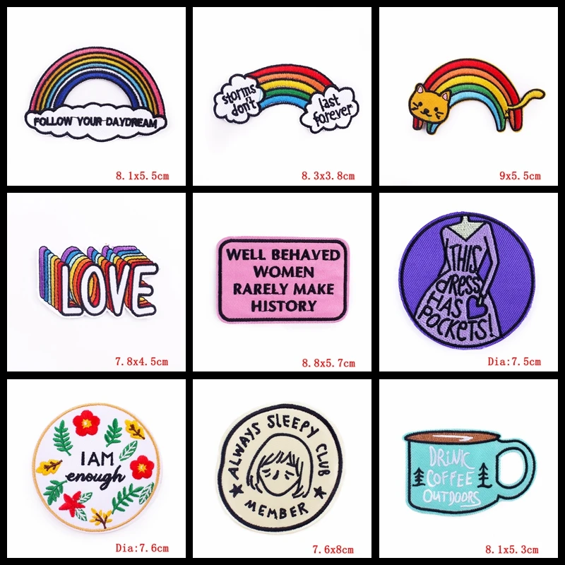 Prajna 10 шт мультфильм письмо аппликация патчи на одежде Сделай Сам кофе чашки железа на вышитые патчи для одежды значки с радугой