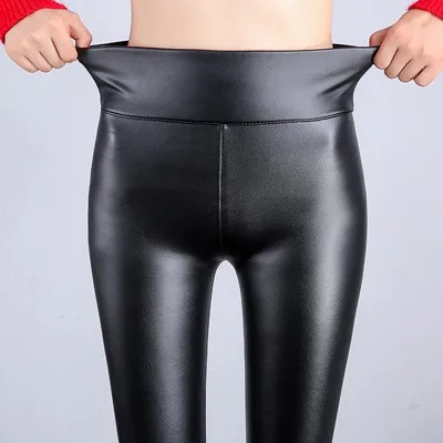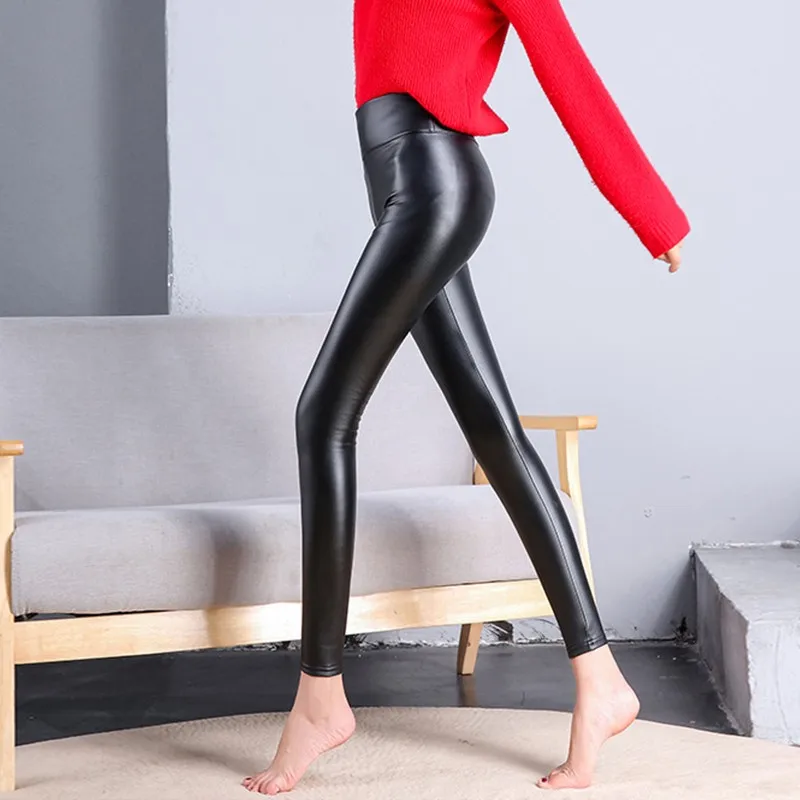 Леггинсы NORMOV женские из искусственной кожи, эластичные облегающие пикантные длинные брюки с эффектом пуш-ап в готическом стиле, с завышенной талией, черные кожаные