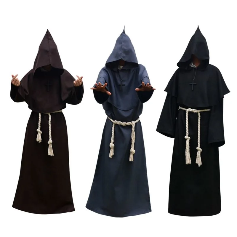 Халат для Хэллоуина унисекс, плащ с капюшоном, костюм для косплея, костюм монаха, одежда для ролевых игр для взрослых