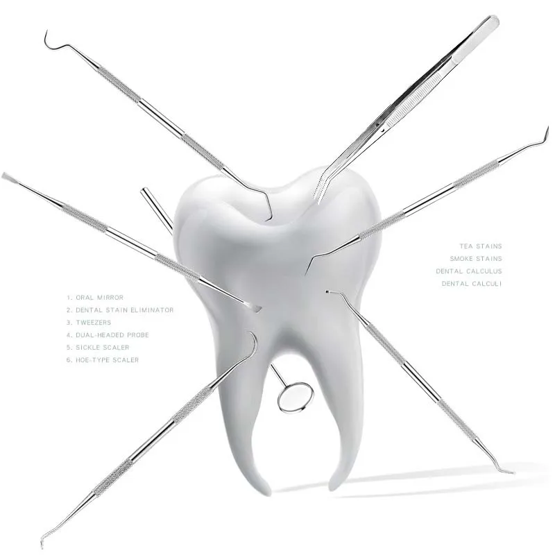 Стоматологическое зеркало из нержавеющей стали, 5 шт.компл. готовый набор инструментов для зонда, серп-пинцет, столовые приборы