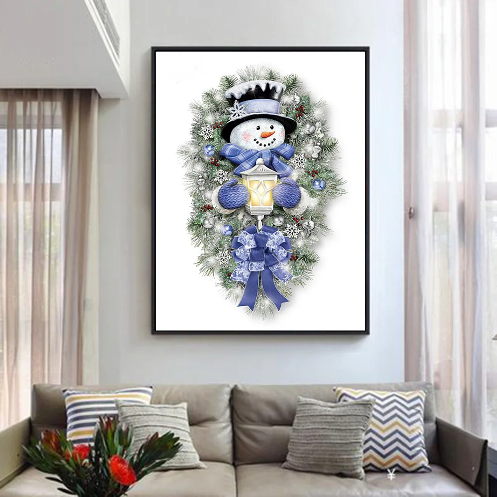 Алмазная 5d картина HUACAN с изображением снеговика, полноразмернаякруглая мозаика с вышивкой, Рождественский венок, домашний декор