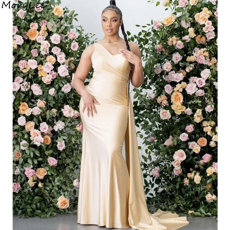 Женское атласное платье-русалка, платье из спандекса на одно плечо,...