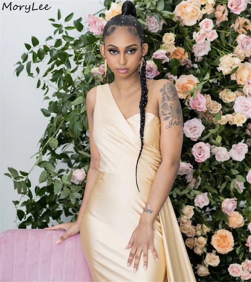 Женское шелковое атласное платье-Русалка на одно плечо, длина до пола