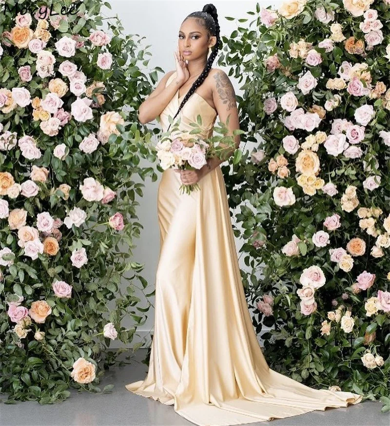Золотые платья подружки невесты с V-образным вырезом без рукавов ше...