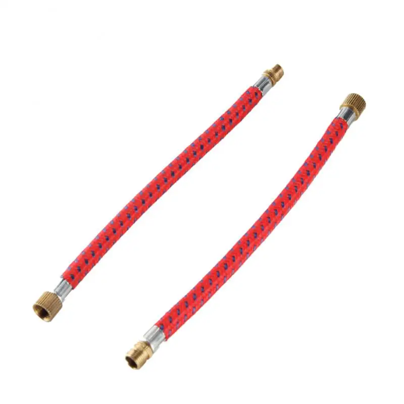 Материал изделия: плетеный шланг + два крепежных кольца + два конца рта США (медное покрытие из цинкового сплава)