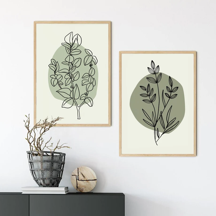 Абстрактная Акварельная Линия цветных листьев, настенная живопись н...