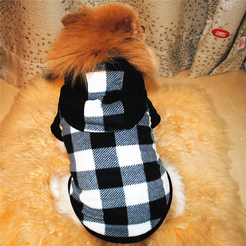 Флисовая теплая одежда для собак, клетчатые толстовки с принтом для домашних животных, пальто, осенне-зимняя толстовка с двумя ногами, одежда для чихуахуа, французского бульдога