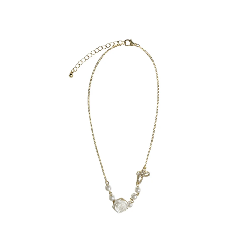 Подвеска Timlee N111 с искусственным жемчугом и бабочкой