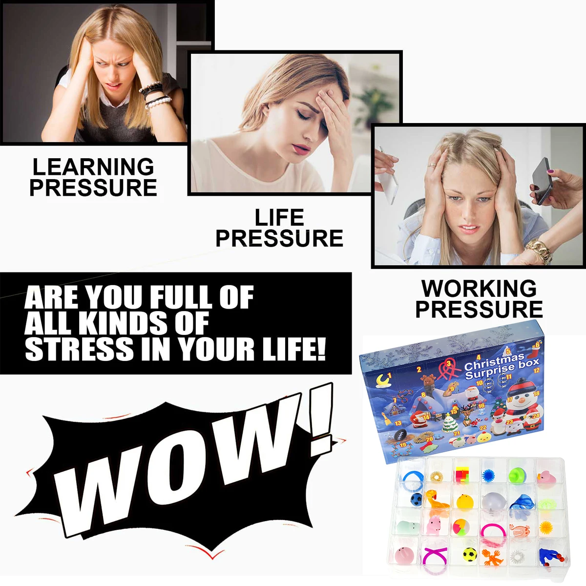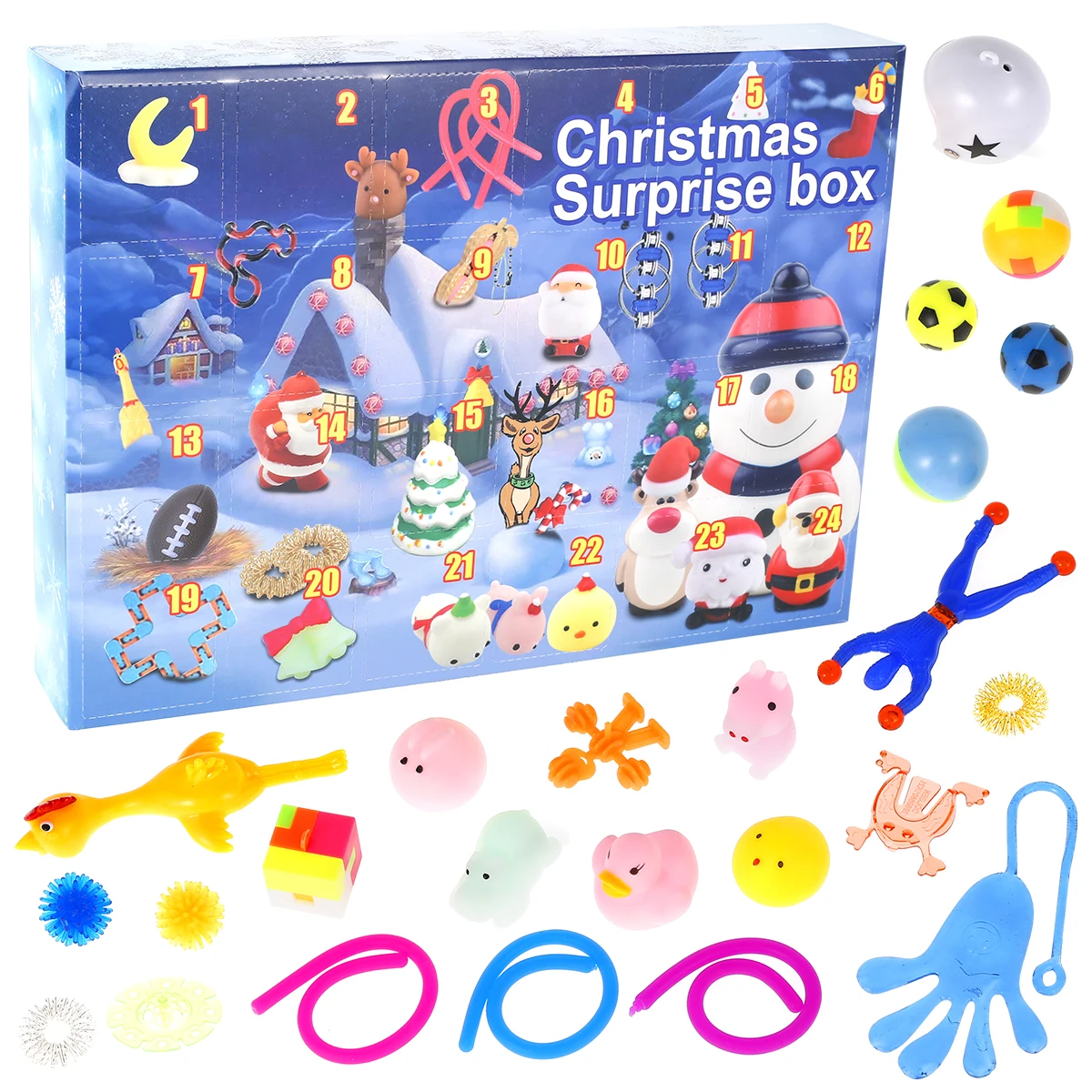 Рождественский календарь с обратным отсчетом, игрушки с календарем, 24 дня, набор антистрессовых игрушек, игрушка для снятия стресса, детские подарки