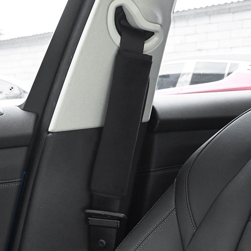 3. Мягкий Плюшевый наплечный ремень очень прост в установке; Инструменты не требуются. У них есть кусок прочной липучки на нижней стороне, которую вы просто открываете, складываете над ремнем безопасности, а затем снова закрываете.
