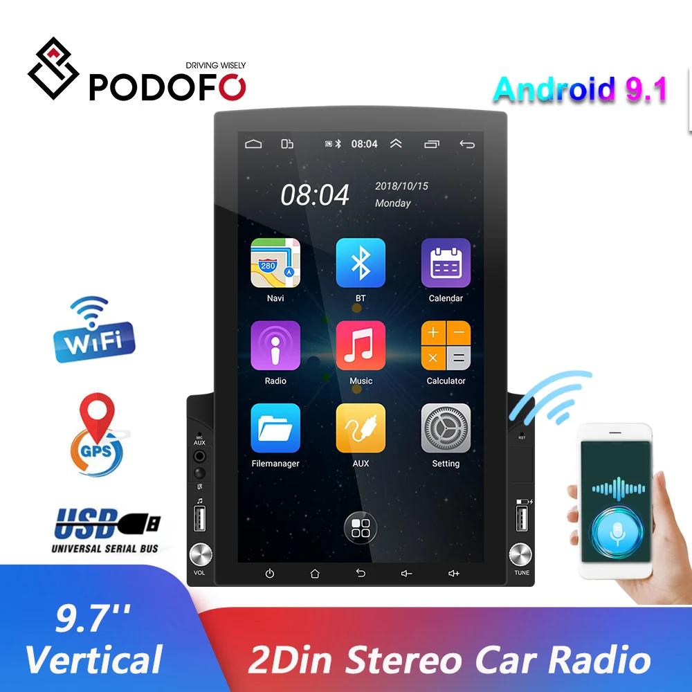 Podofo 2din Android Car Radio Bluetooth Stereo Multimedia MP5 player GPS 9.7 inch 2DIN AUTO autoradio Mirror Link FM Steer Wheel Control For Toyota