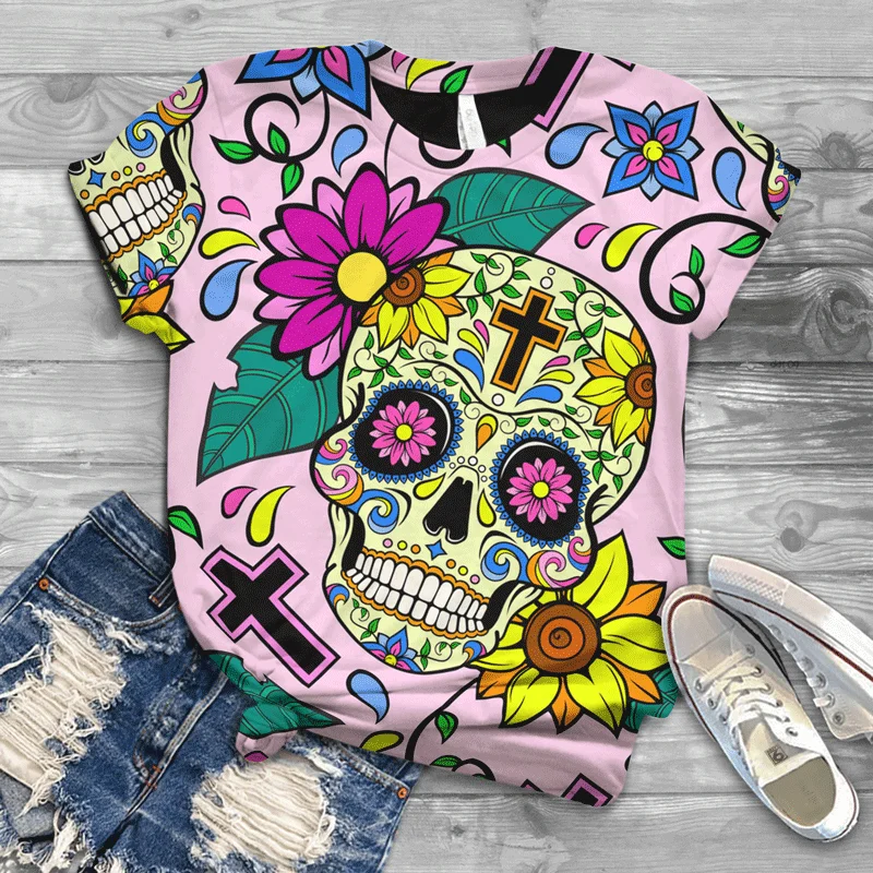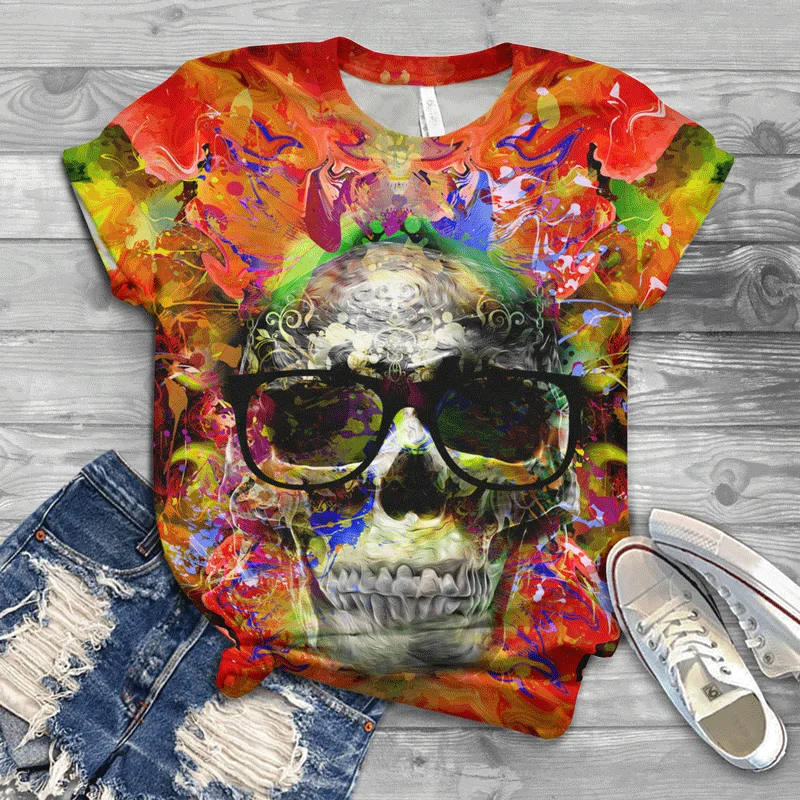 Женская футболка с 3D-принтом черепа, разноцветная футболка с корот...