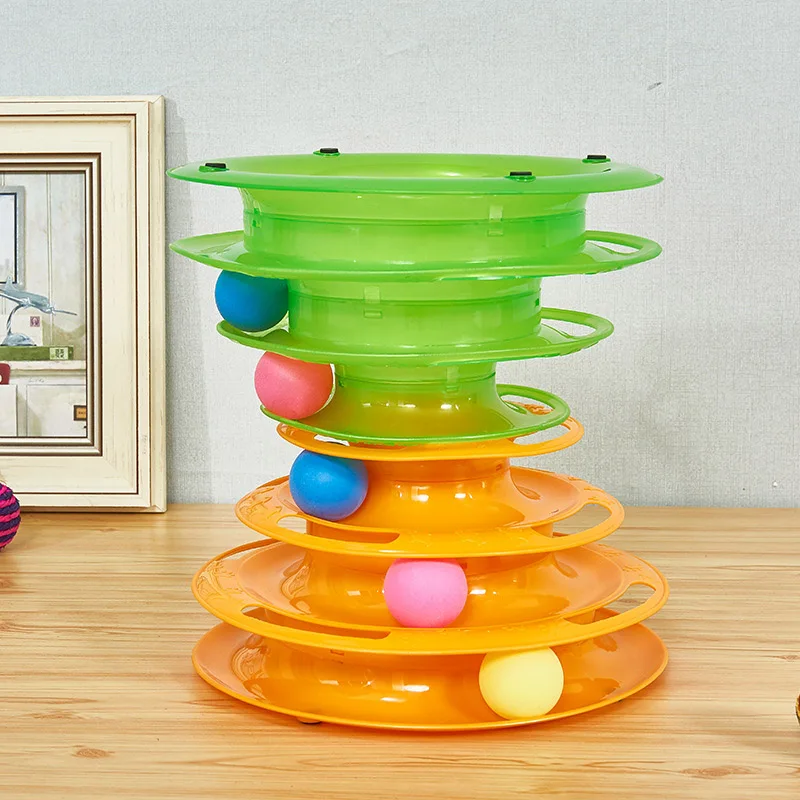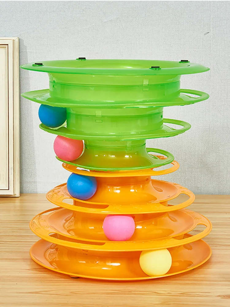 Трехуровневая интеллектуальная игрушка для кошки, забавная башня-Кот, пазл, конфетные цвета, измельчение когтей, развлекательный шар, фотопластина