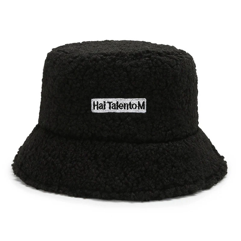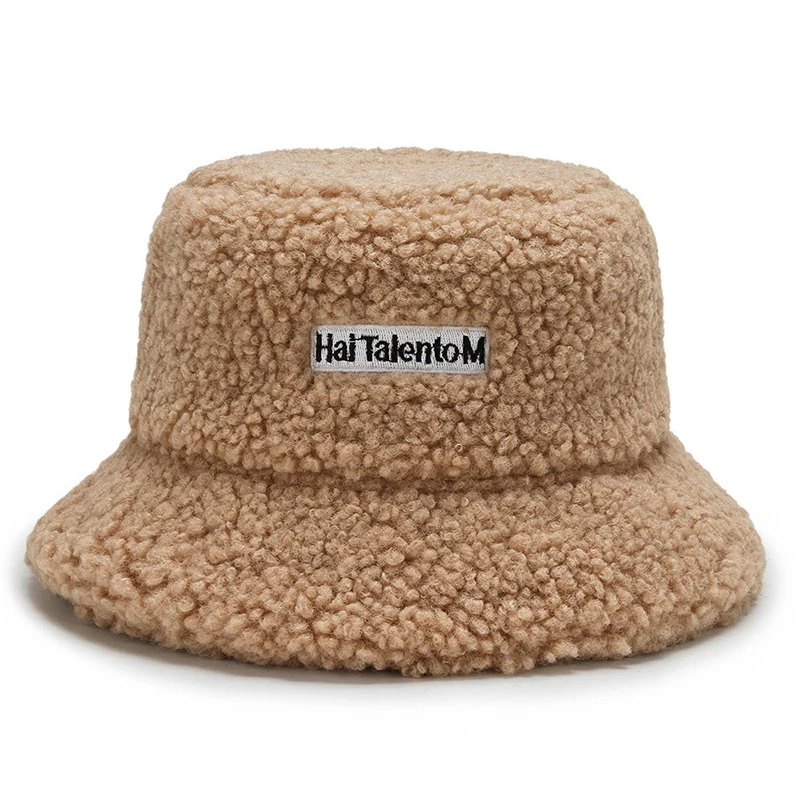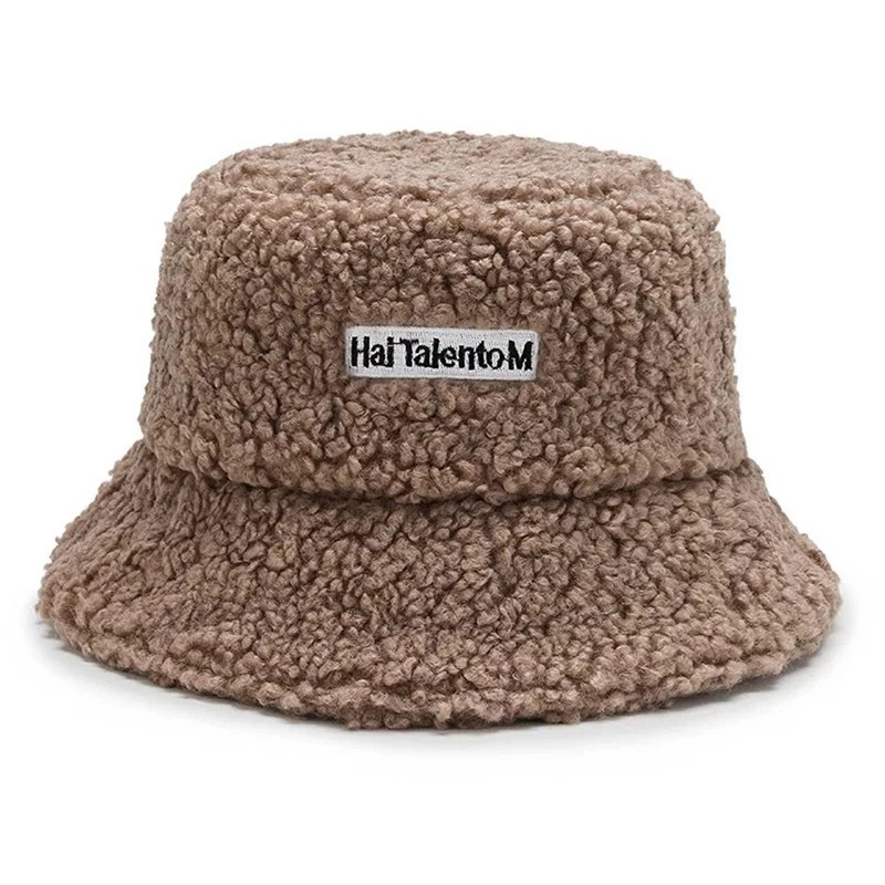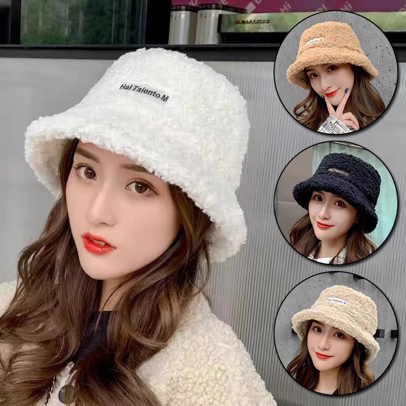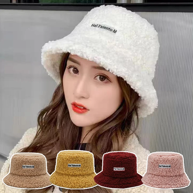 Панама женская Корейская теплая, плюшевая шляпа из ягненка, солнцезащитная, для рыбалки, повседневная плоская шапка, 1 шт., Осень-зима