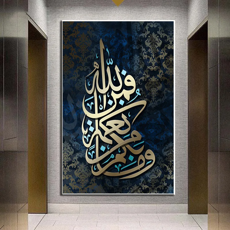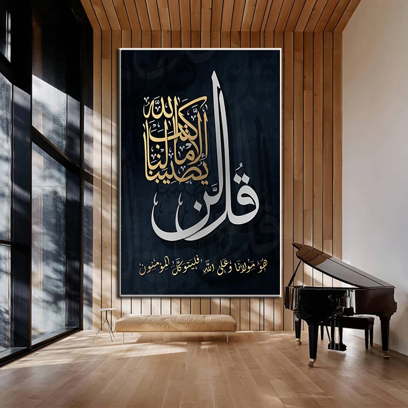 Черная и Золотая Ayatul Kursi Quran Verse Arabic холст с каллиграфией живопись Исламская стена художественные плакаты и принты домашний Декор подарок