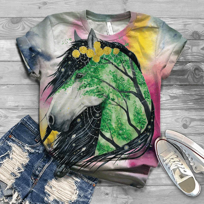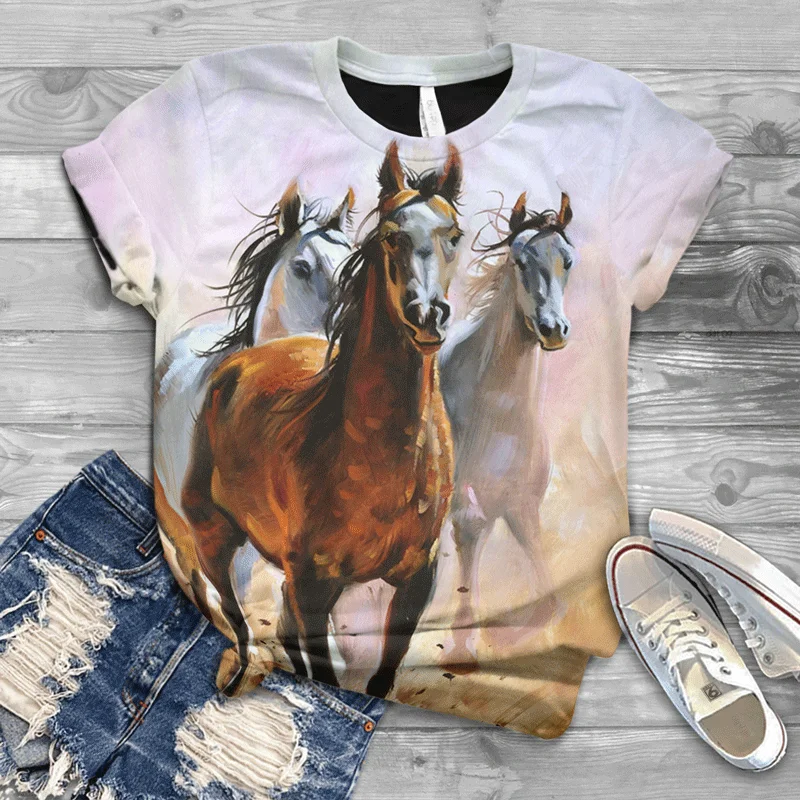 Футболка женская летняя с коротким рукавом и принтом лошади