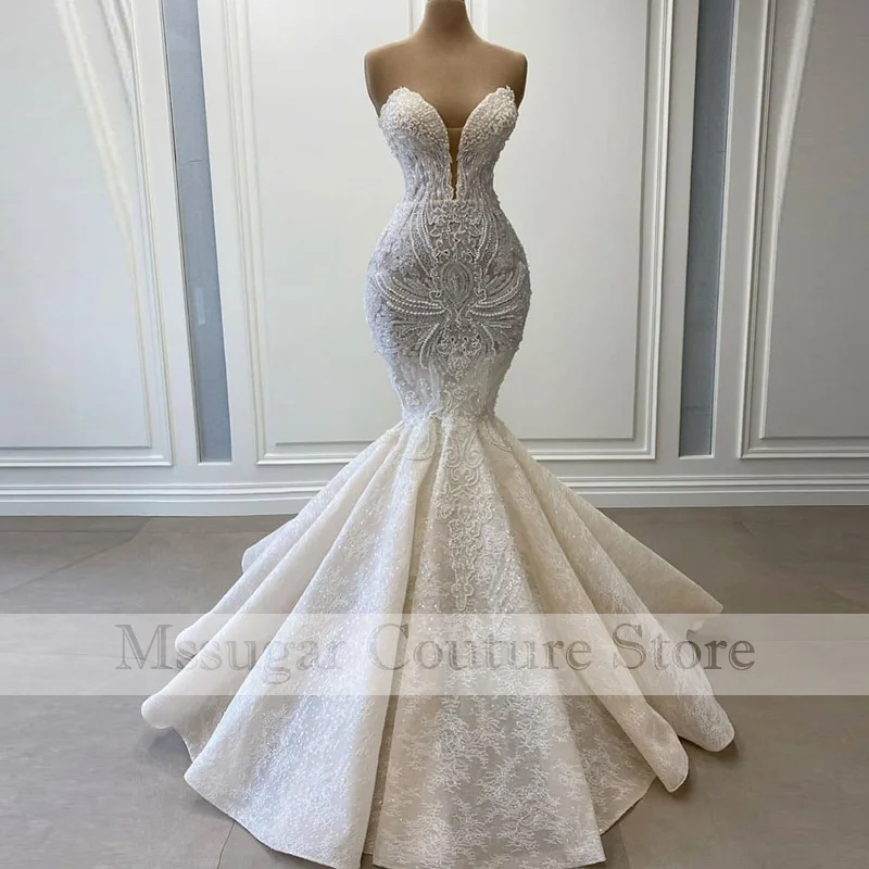2021 удивительные кружевные свадебные платья-русалки с бисером аппликации милое Африканское свадебное платье Vestido De Noiva