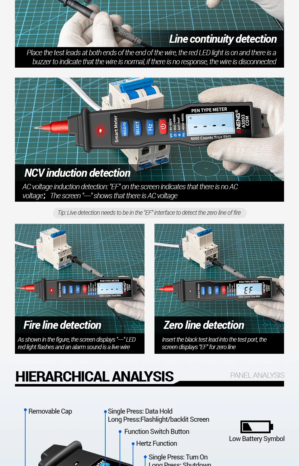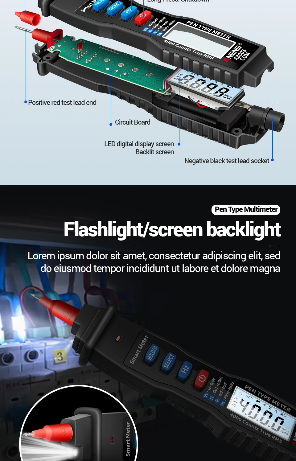 Цифровой ручка с вольтметром ANENG A3003, Бесконтактный индикатор н...