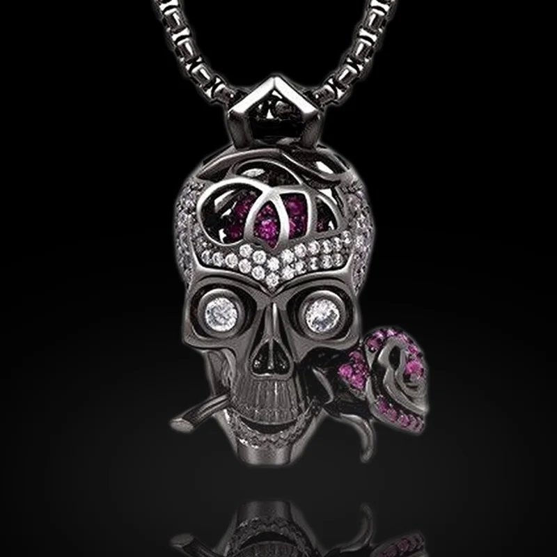 Кулон в виде темного черепа, ожерелье из хрусталя с фиолетовыми розами