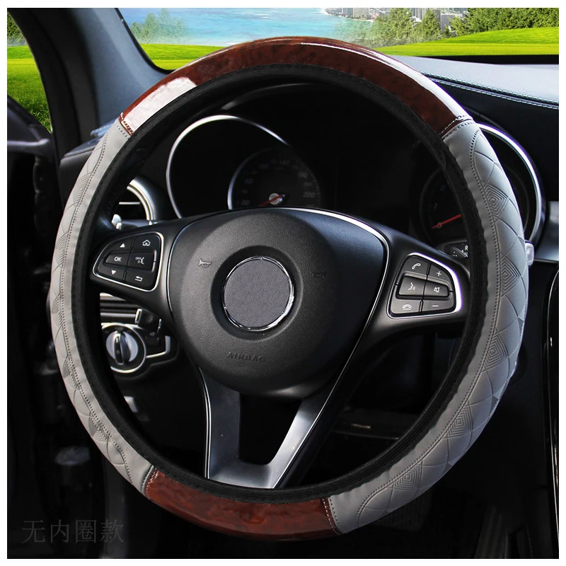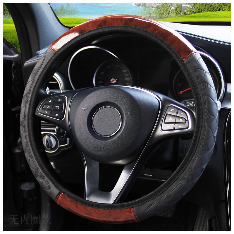 Чехол рулевого колеса автомобиля чехол на руль автомобиля, персиковый чехол с текстурой древесины, кожаные чехлы для руля с тиснением, подходящие автомобильные аксессуары