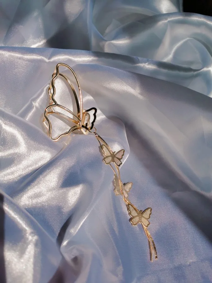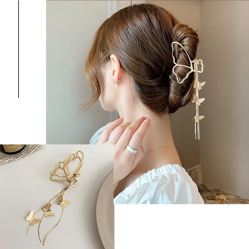 Новая женская Золотая Геометрическая заколка для волос в виде бабочки, винтажная Длинная подвеска, Шпилька для волос, краб для волос, аксессуары для волос