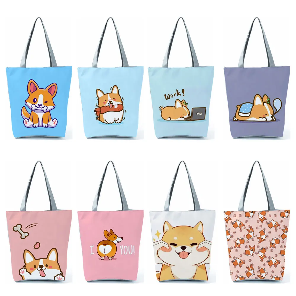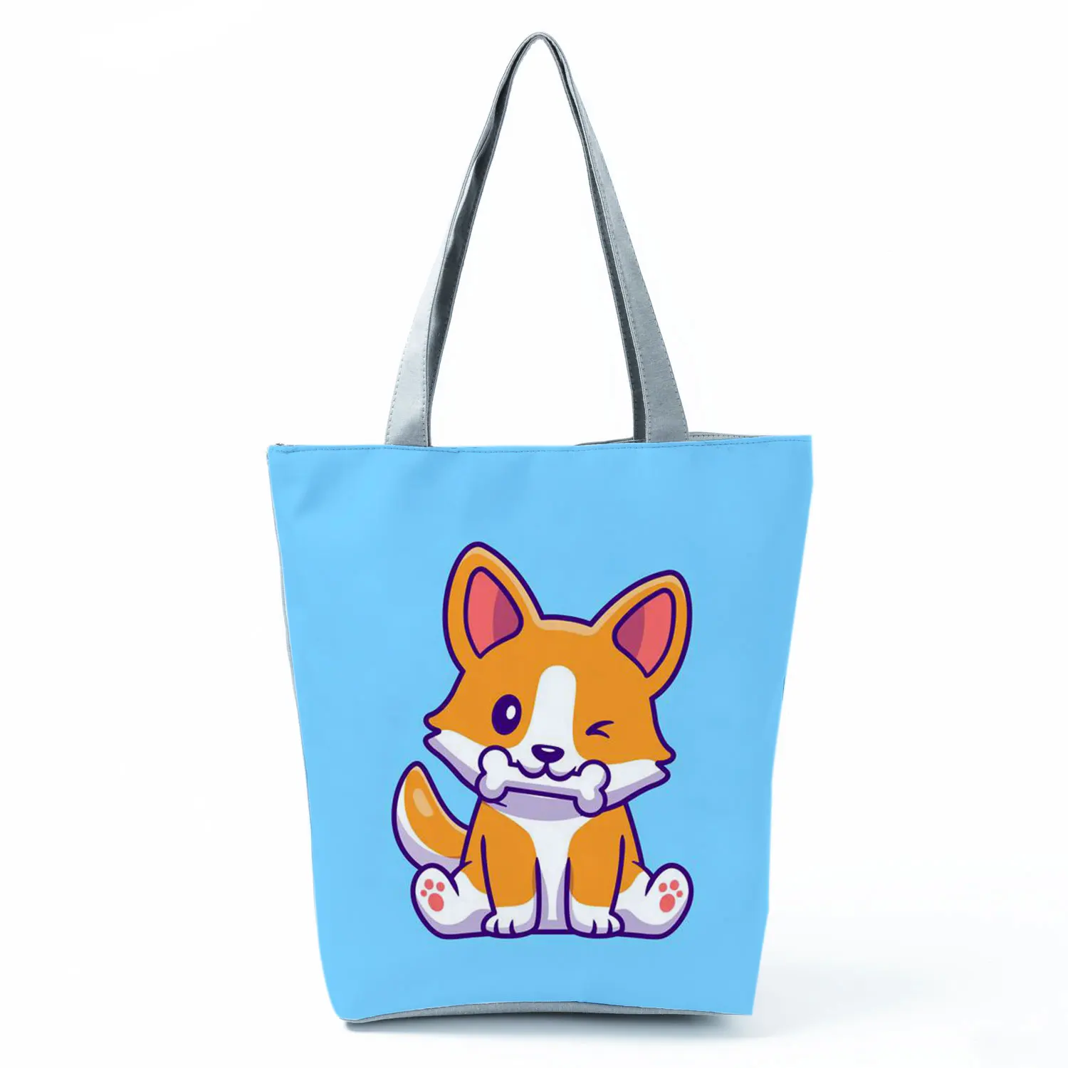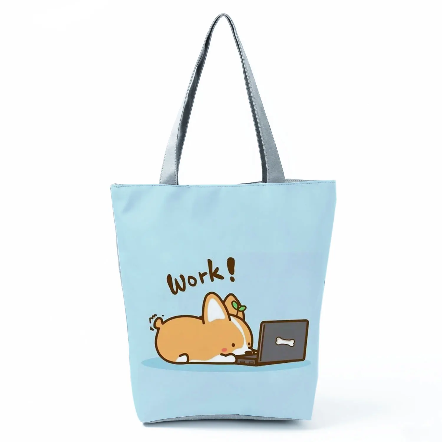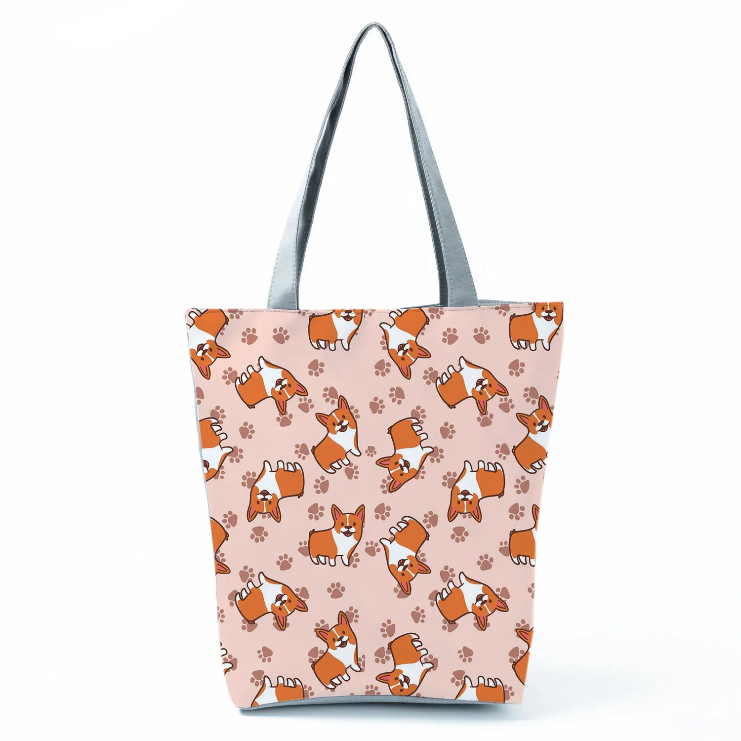 Сумки-тоуты с принтом корги, многоразовые складные саквояжи на плечо для продуктов, эко-сумка для покупок, отличный подарок, женская сумочка