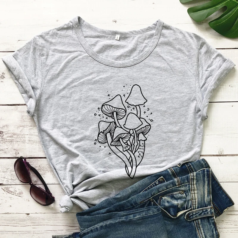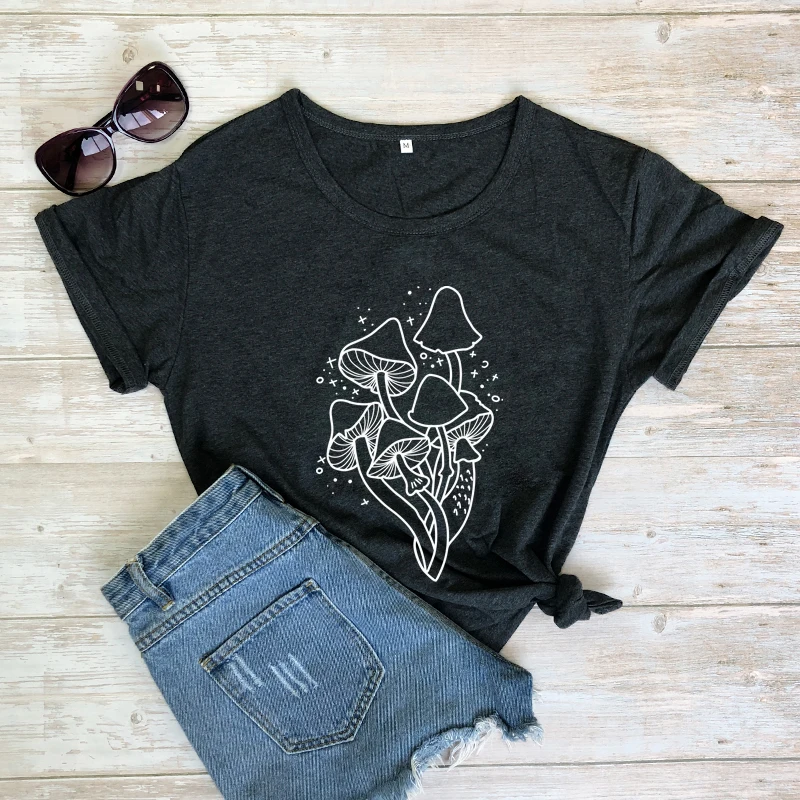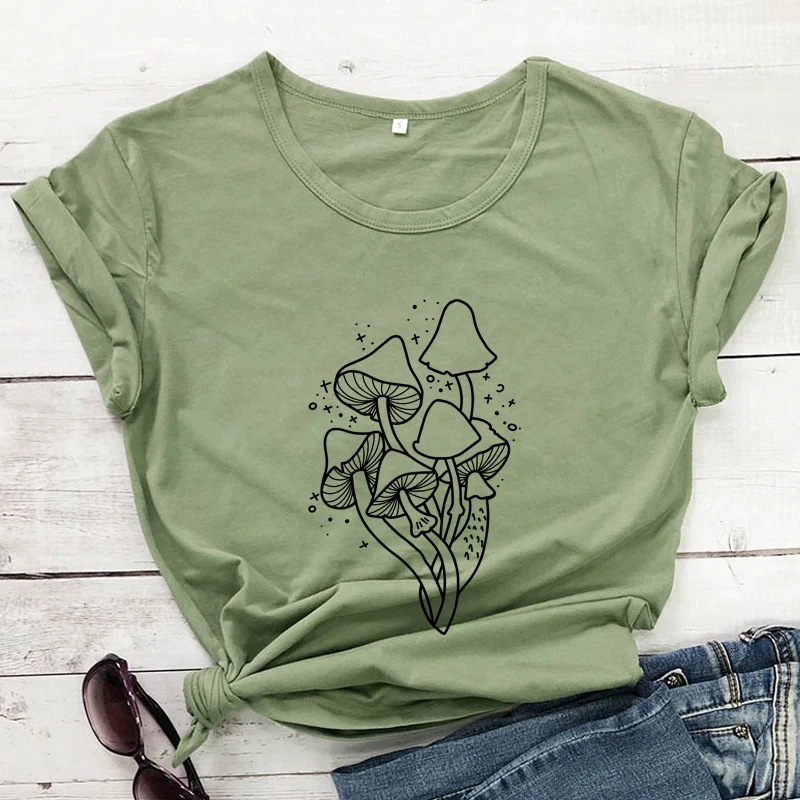 Футболка женская летняя с коротким рукавом и принтом гриба и лягушки