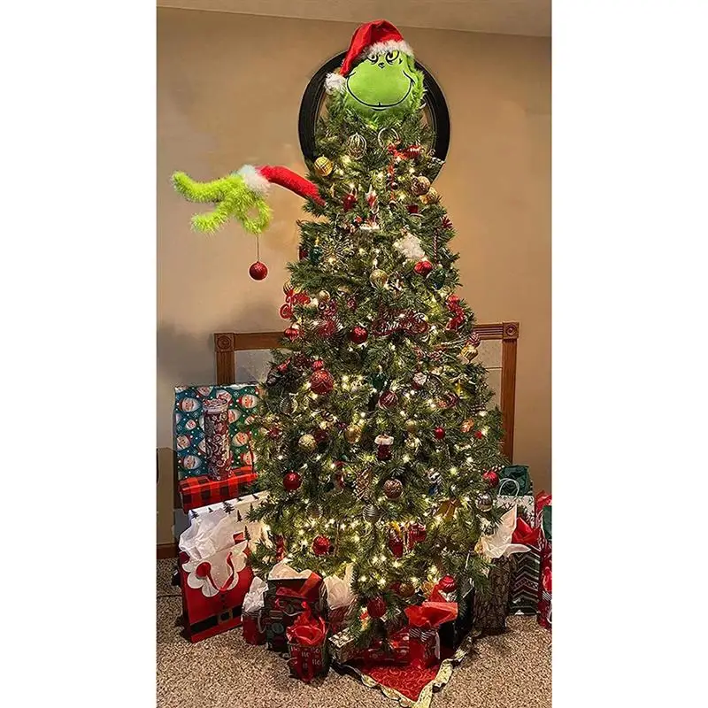 Grinch Рождественская елка на руку, украшения, держатель, Топпер, пушистый зеленый грим, Топпер для рождественской елки, рождевечерние, детские подарки