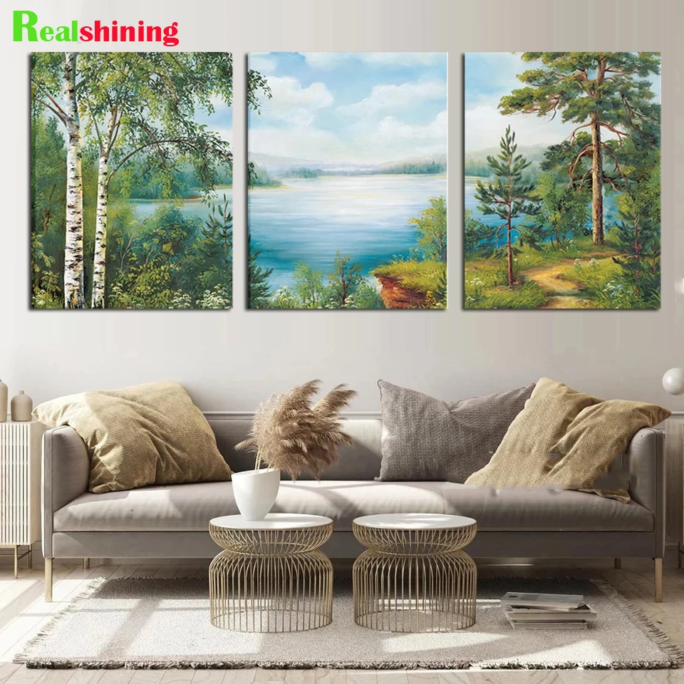 Триптих синее озеро полная квадратная дрель 5d береза лес пейзаж 3 шт. Алмазная вышивка сделай сам алмазная живопись Набор для вышивки крестиком J23