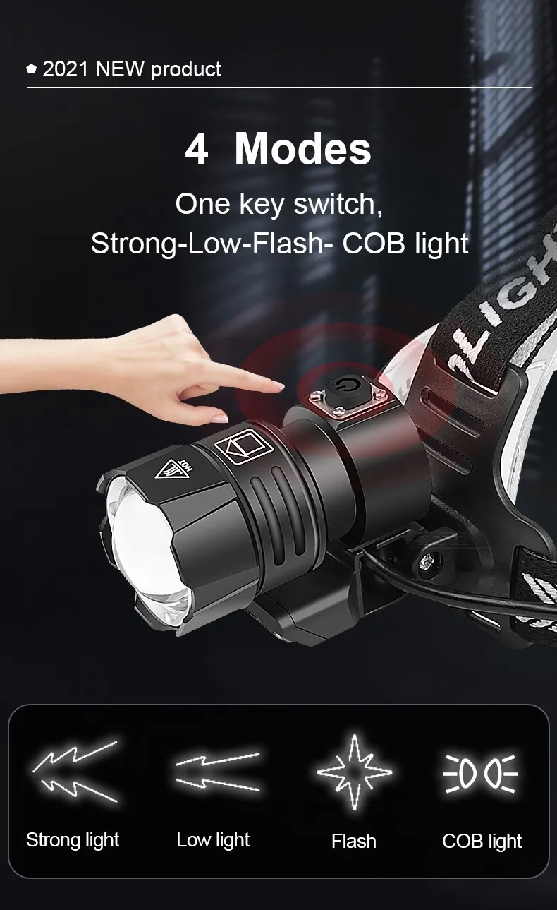 Название: супер яркий налобный фонарь XHP199 + COBМодель светодиодный бусины: XHP199 + COB сильный светильникДиапазон: 800-1500 метровРазмер (см): 6,5*6,5*4,2Режим переключения: 4 режима (высокий-низкий-SOS + COB светильник)Материал корпуса: алюминиевый сплавУровень водонепроницаемости: IPX-8Питание: 3x18650 батареи (1x18650 или 2x18650 также делает продукт работать должным образом)Время освещения: аккумулятор 3*18650, срок службы батареи больше, чем обычный 9000 мАч, и он более прочный.Цвет излучения: белый светильникРежим масштабирования: телескопический зумМетод зарядки: USB зарядка (вход и выход, с функцией мобильного питания, используется для мобильных телефонов)