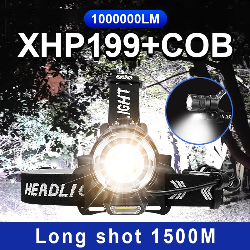 Самый мощный яркий светодиодный налобный фонарь XHP199, налобный фонарь с USB-зарядкой, налобный фонарь XHP160 высокой мощности, налобный фонарь 18650 COB, рыболовный фонарь