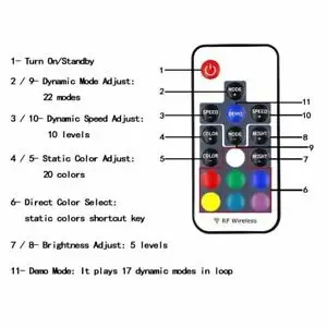 Светодиоды на ленте выполнены по SMD-технологий. Модель 5050. Энергопотребление 7.36 Вт/м. Кодирование цвета осуществляется по аддитивной цветовой модели (RGB). Напряжение 5V. Есть разные варианты количества led-светодиодов на метр ленты. В комплекте идет бобина с лентой, батарейный блок с RGB-контроллером, пульт дистанционного управления (17 клавиш) и инструкция. Для управления пультом необходимо открытое расстояние в 20 м. Для блока питания нужны батарейки типа АА(пальчики), для пульта, в описании товара написан тип батарейки(таблетка) CR2032, но на самом пульте CR2025. Доставка до Беларуси 15 дней. Спасибо продавцу.