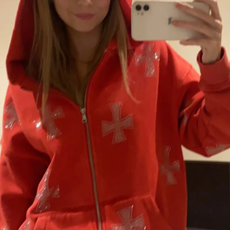 Женская винтажная толстовка с капюшоном, на молнии, Y2K
