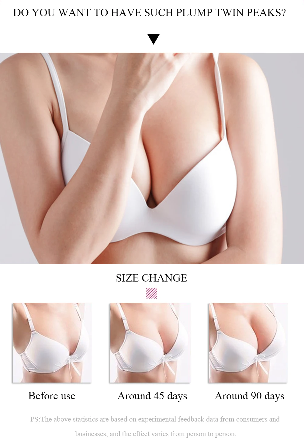 Эффекты: чистые растительные экстракты не раздражают кожу. Повышает эластичность и напряжение кожи груди, улучшает и поднимает грудь. Закрепите грудь, Украсьте изгиб груди, сделайте двойные вершины круглыми и полными, и сделайте ваше тело еще более привлекательным.