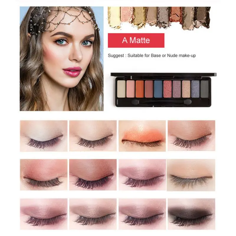 Палитра матовых теней для век с кисточкой, 10 цветов, блестящие тен...