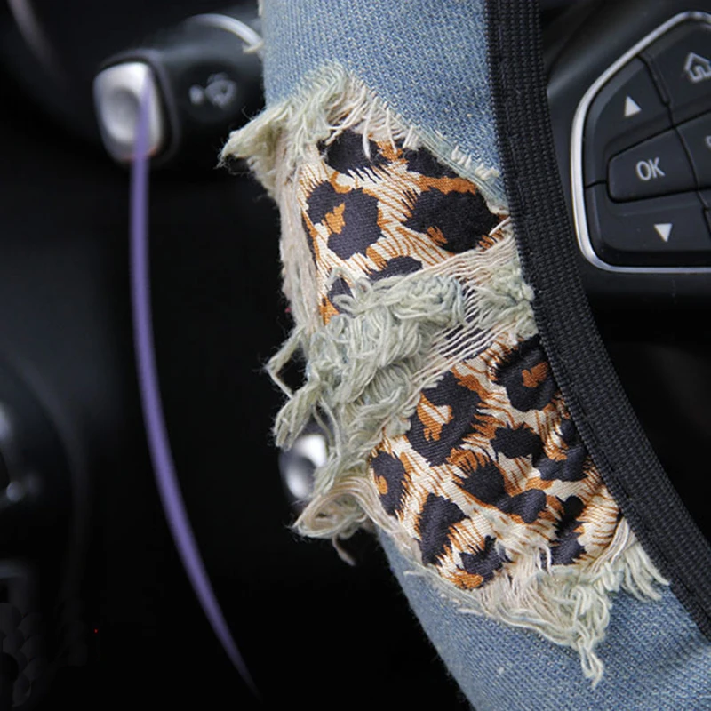 Универсальные женские чехлы для руля, подходящие Чехлы для руля автомобиля, леопардовые джинсовые аксессуары для автомобиля