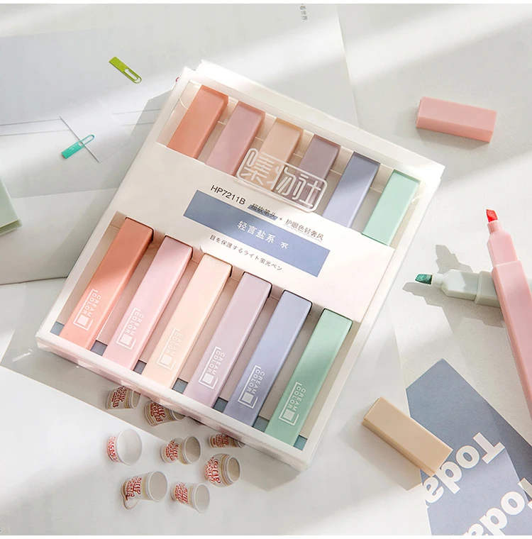 6 шт.лот маркеры с мягкими наконечниками флуоресцентная ручка Moran...