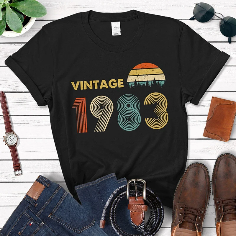 Винтажная футболка, модель 1983 года, подарок на 39-й день рождения для 39 лет, отца, дедушки, мамы, бабушки, мужчин, женщин, рубашка в стиле ретро 80-х годов, Классическая футболка