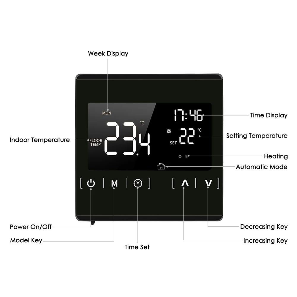 Умный термостат для дома, программируемая электрическая система отопления пола, Терморегулятор с сенсорным ЖК-экраном, регулятор температуры