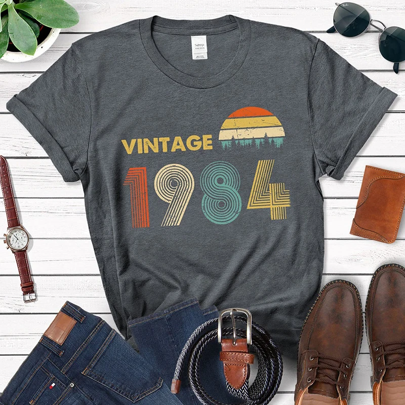 Винтажная Футболка коллекции 1984 года, рубашка 38-го дня рождения с идеей подарка для 38 лет, папы, дедушки, мамы, бабушки, мужчин и женщин, рубашка в стиле ретро 80-х годов, Классическая футболка