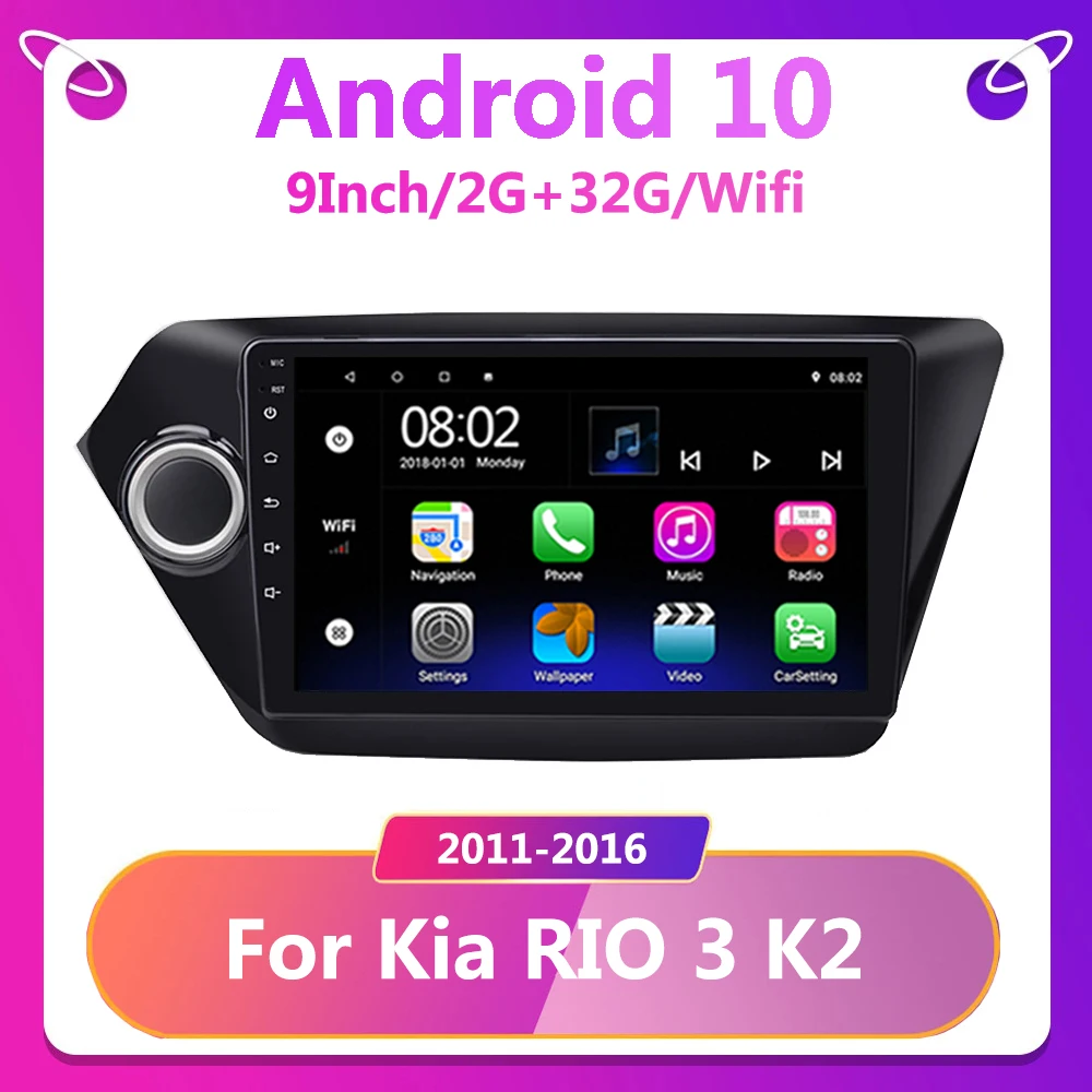 Автомагнитола 2DIN, 2 + 32 ГБ, Android 10, 2DIN, gps-навигация, мультимедийный плеер для Kia RIO 3 K2 Rio 2011, 2012, 2013, 2014, 2015, 2016, gps