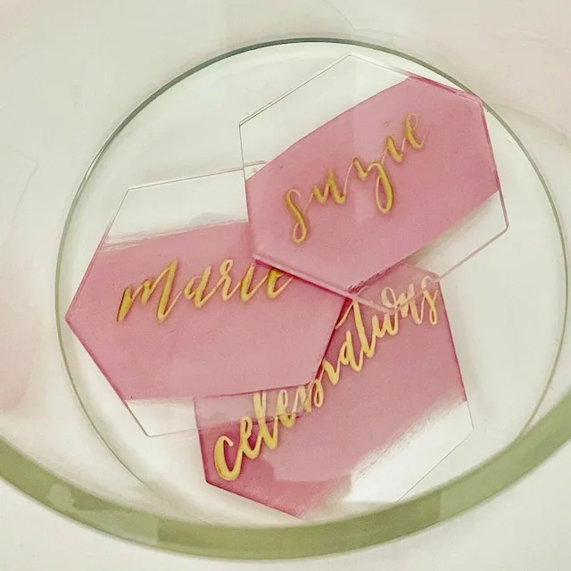 Прозрачные акриловые свадебные приглашения пыльные розовые буквы пл...