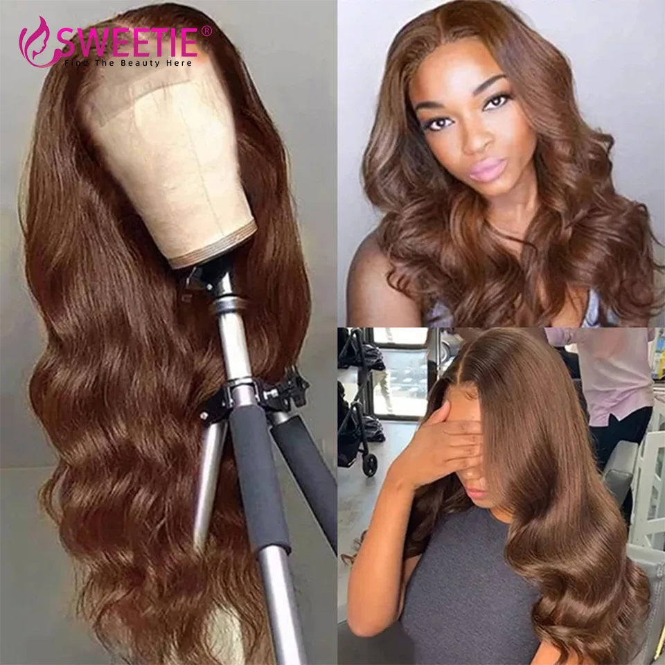 13x4 шоколадные коричневые фронта шнурка человеческих волос парик 4x4 Lcae застежка 13x1 часть кружевная объемная волна парики для чернокожих Для женщин, предварительно вырезанные Реми бразильские парики
