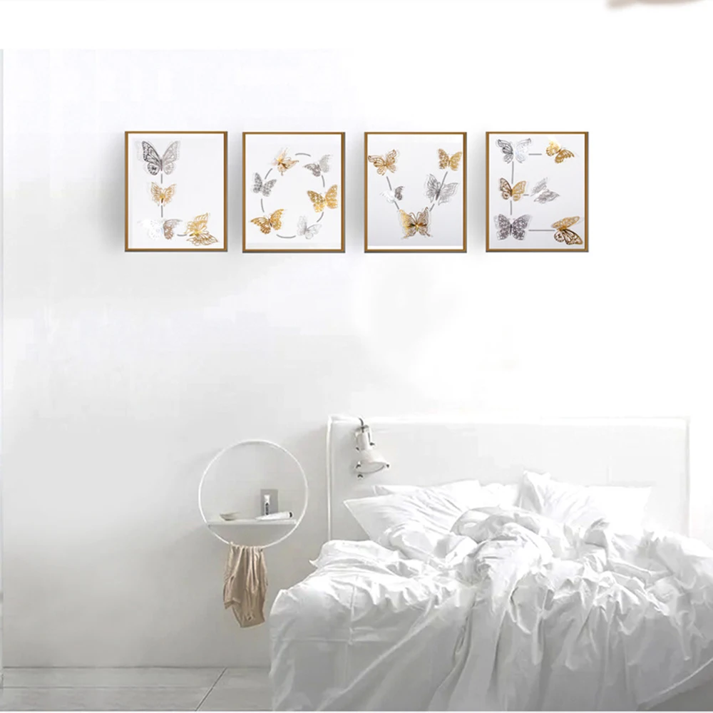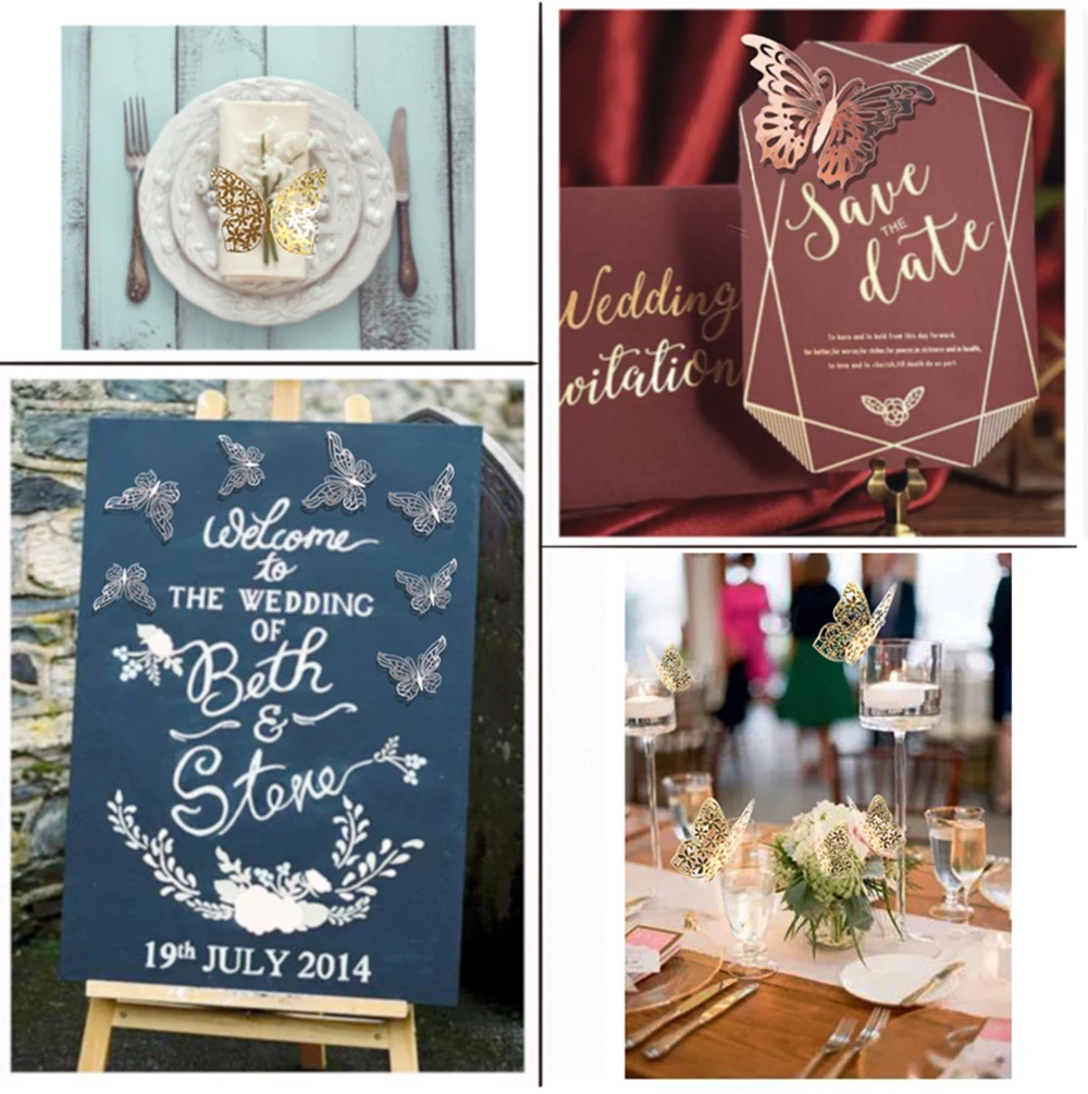 Домашний декор, свадебные подарки, металлическая текстура, настенное искусство, 3D наклейки-бабочки, ЗолотойСеребряныйрозовое золото, полые искусства