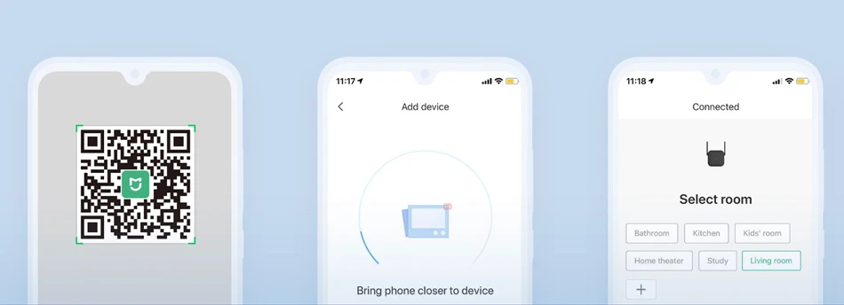 Устали от Wi-Fi «мертвая зона»? Mi Wi-Fi Range Extender Pro поможет вам легко подключиться к сети.1 、 положить удлинитель для головок рядом с роутером, включите питание и подождите, пока желтый индикатор светильник для того, чтобы не начнут мигать.2. Отсканируйте qr-код, чтобы установить приложение и следуйте инструкциям, чтобы добавить устройство.3. Когда светильник индикатора становится синим, сопряжение завершено.Теперь вы можете просто отключить и подключить Mi Wi-Fi Range Extender Pro в месте для лучшего качества сигнала и покрытия в вашем доме, без необходимости снова настроить расширитель.