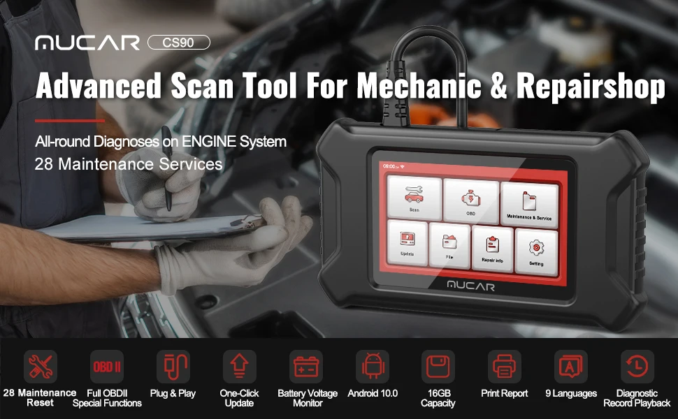 Сканер MUCAR CS90 OBD2 специализируется на диагностике системы двигателя