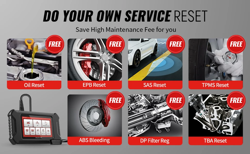 Обслуживание сброса масляной лампы: позволяет выполнить сброс для нового расчета системы жизнедеятельности моторного масла после изменения масла.Электронный сброс тормозов парка EPB: это важно для поддержания безопасности и эффективности электронной тормозной системы. Напомните, что вы сбросили тормозную колодку, особенно если вы заменили ее.Сброс датчика угла поворота SAS: помогает очистить воспоминания о датчике угла поворота и играет важную роль в калибровке датчика угла поворота руля.Система контроля давления в шинах TPMS Сброс: имеет смысл в отображении сенсорных идентификаторов из Эбу транспортного средства, вводе замены датчиков TPMS и датчиков тестирования.ABS кровотечение: ABS тормозное кровотечение, чтобы получить твердую тормозную колодку после ремонта ABS насосной системы.Регенерация фильтра DP: поможет вам очистить блокировку фильтра DPF, чтобы соответствовать стандартам проверки.TBA = ETS/электронное приспособление дроссельной заслонки: корпус дроссельной заслонки представляет собой трубку, содержащую поворотный плоский клапан (бабочка), который используется для контроля количества воздуха, входящего в двигатель. В автомобиле с электронным топливом Датчик положения дроссельной заслонки и датчик воздушного потока связываются с компьютером, который поставляет соответствующее количество топлива, необходимое для инжекторов. Необходимо повторно изучить положение датчика дроссельной заслонки после очистки или ремонта.