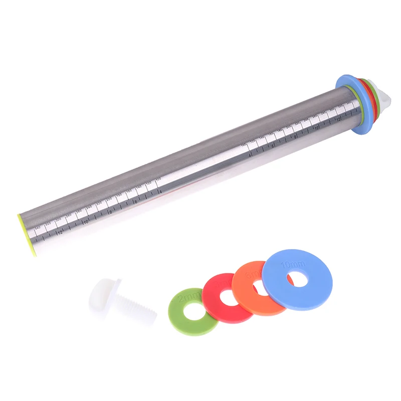 Регулируемая Скалка из нержавеющей стали, ролик для теста, 4 съемных колец