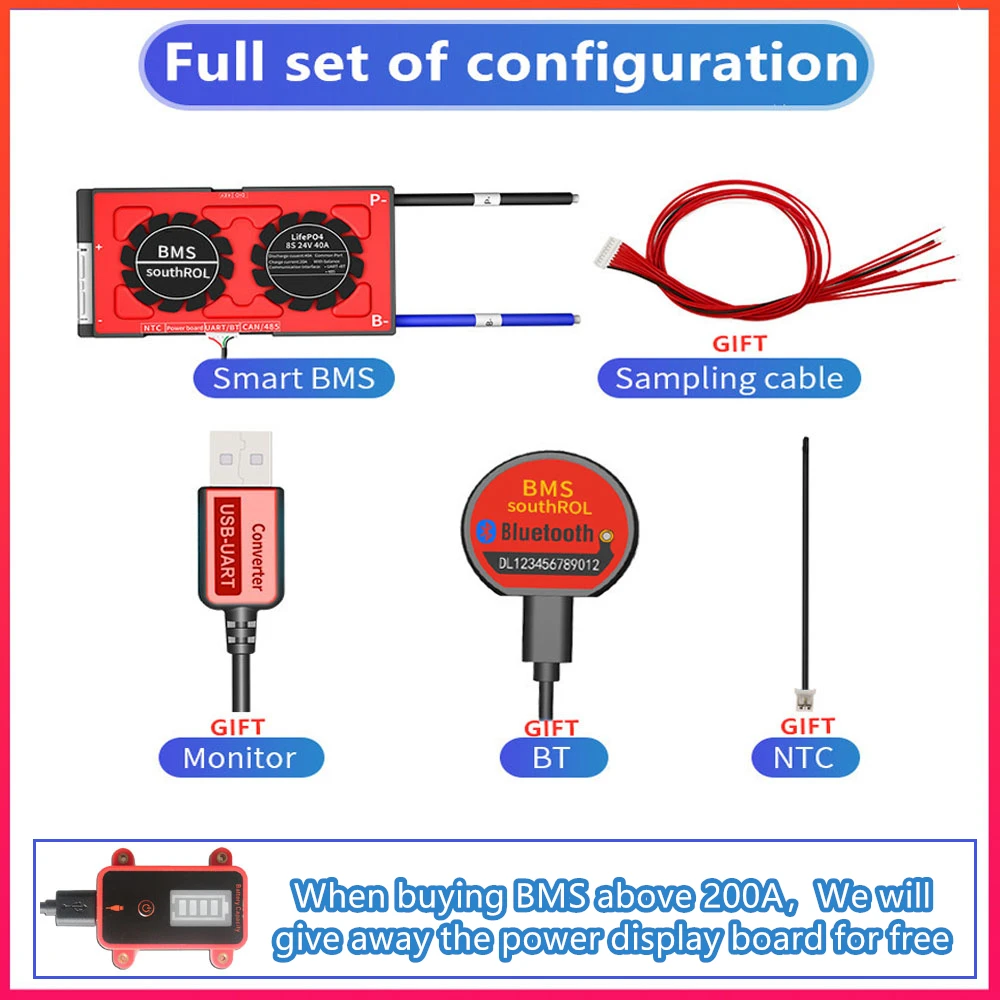 Умные BMS 4s Lifepo4 Bluetooth Lipo 4S 24S 80A 250A USB UART солнечная система хранения батарей балансир