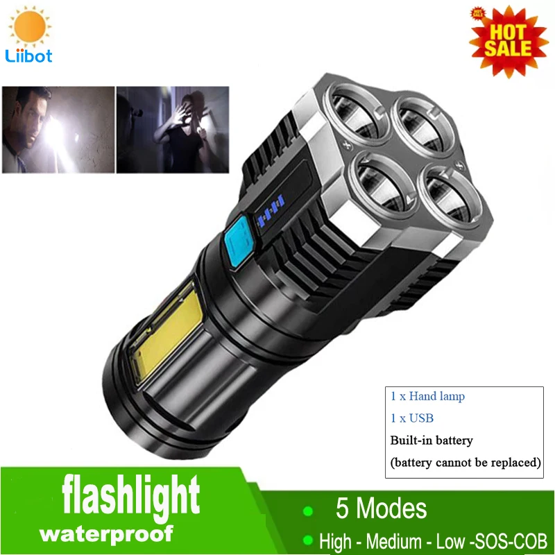 4-ядерный суперъяркий фонарь, ярсветильник заряжаемый фонарик, фона...